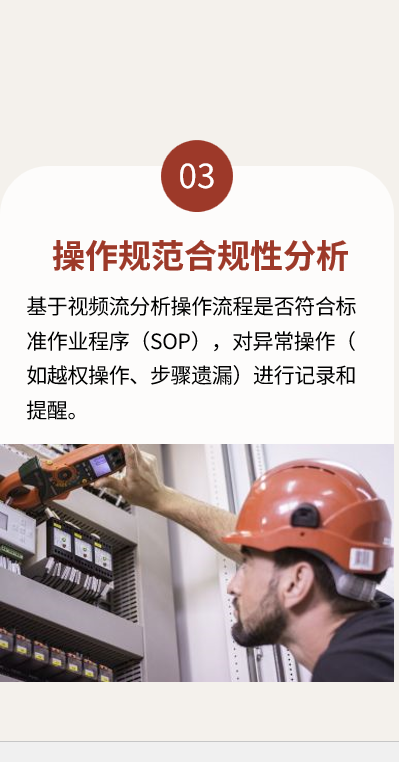 伟风智能还基于视频流分析技术,对操作流程进行合规性分析。系统能够对照标准作业程序(SOP),对操作人员的每一个动作进行精准识别和分析。一旦发现越权操作、步骤遗漏等异常操作,系统会立即进行记录和提醒,帮助操作人员及时纠正错误,确保生产过程的规范性和安全性。