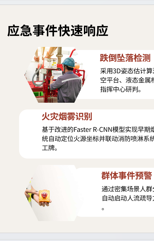 伟风智能在安全生产视觉分析方面,深入应用了多项前沿技术,打造了一系列高效、智能的应用场景,为企业的安全生产提供了有力保障。